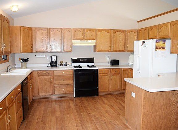 Country Home, but close to town! 2001-Built Ranch on almost a 1/2 ACRE! Mature trees line the parklike yrd. Grt Rm flr pln centered by gas FP & vaulted ceilings. Kitch w/an incredible amount of cabs. 16x15 Mstr BR. - ALL large bedrooms. Full, roughed in bsmnt, 1st flr lndry. Low maint brick & vinyl exterior. Newer roof, carpet, freshly painted. Sit, enjoy the nature-It's your own slice of paradise! GREAT LOCATION!
