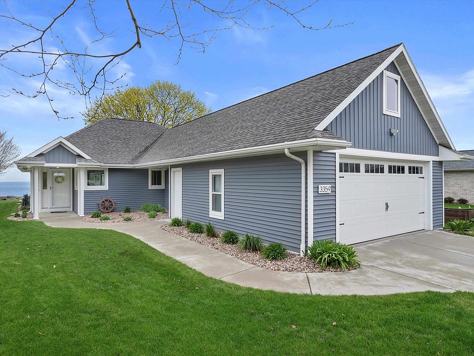 This is your chance to get an incredible house on the lake and only 10 minutes from the city of Green Bay. You get the benefits of Nicolet Drive, without being on the main road. With 2 bedrooms on the main level and a 3rd bedroom loft over the garage, this house has been lovingly maintained and no detail overlooked! The kitchen has beautiful quality cabinets, stainless steel appliances, granite countertops, and tons of storage. The lower level has hardwood floors in the main areas and primary bed, while the secondary bedrooms are carpeted. Two cars easily fit in the garage, plus extra storage for your outdoor toys in the shed in the back yard. Drive just a few minutes and you have access to lots of great Wisconsin parks or enjoy sunsets on the water while sitting on your covered back patio