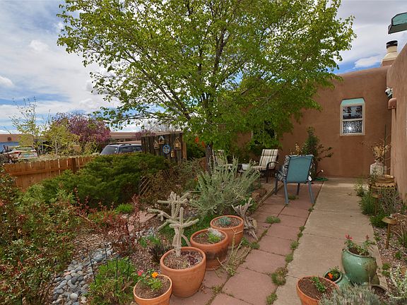 This charming 1720 +/- home in a much desired neighborhood encompasses 3 bedrooms, 2 baths and an all purpose room that could be a perfect den. Over the last few years the owners have lovingly upgraded the house (please see list in documents section of MLS). The open concept kitchen is ideal for the cook in you with a water purification system installed at the sink. The house abounds with expansive walls to showcase your artwork. The living room has soaring high ceilings and a wood burning fireplace to enjoy cozy winter evenings. Refrigerated central air conditioning keeps the house cool in the summer. The All Purpose Room has traditional vigas/beams. The main bedroom has a walk-in closet and a beautiful en-suite bathroom. The landscaped yard is fully fenced for privacy. The home is within easy access to grocery stores, banks, restaurants, the Geneveva Center, the Santa Fe Community College, St. Francis Drive and Cerrillos Road. The well established neighborhood has sidewalks throughout and a greenbelt separating it from Rodeo Road. Enjoy mountain views from the front and sunset views from the back of the house. Neither Seller nor Broker warrant the sq. footage of the lot or house. If square footage is of material concern to the buyer, buyer should independently verify same. HOA fees cover greenbelt insurance. There is a security camera attached to the outside front of the house. It does NOT convey with sale.