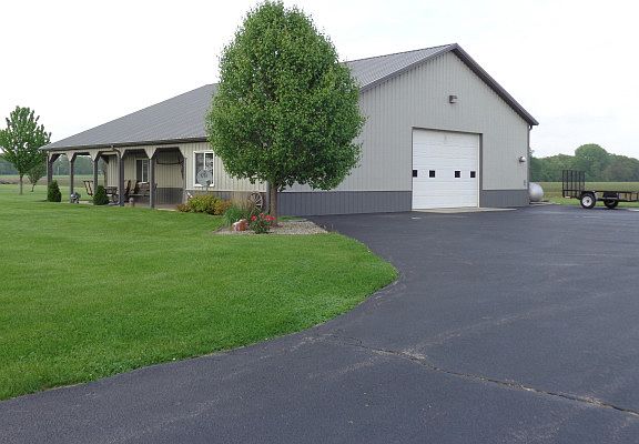 Wonderful Ranch Home on 2 acres in Bonfield. 3 bedroom 3 bath home has a formal living and dining room. Kitchen opens to Huge Family room with wood burning fireplace and sliders leading to the patio. Amazing 42 x 55 outbuilding has it all. Asphalt driveway leads to 10.5ft x16'' door. 12ft ceilings. Has Bath with shower. Tons of storage in walk-up attic. Fully insulated & heated w/concrete floor and drain. 220V hookup