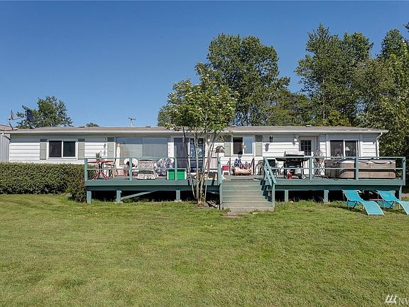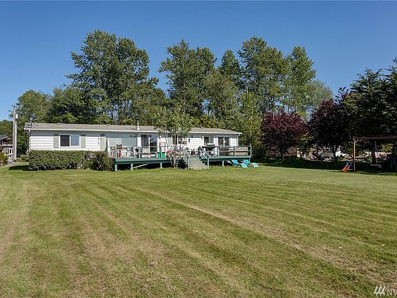 Rare opportunity to own low bank waterfront with west coast views of San Juan Islands & Canada. 1977 Manufactured home & 624 sqft garage/shop rent for $1350 month to month. Tenants would like to stay. Live there, as-is, collect rent, or build your dream home amid other high value owner occupied homes. Water & sewer connected, flat, gently sloping to private beach. The waterfront lot is approx. 1 acre w/ 90ft of waterfront. The remainder of the 2.67 acre lot is across the street and is forested.