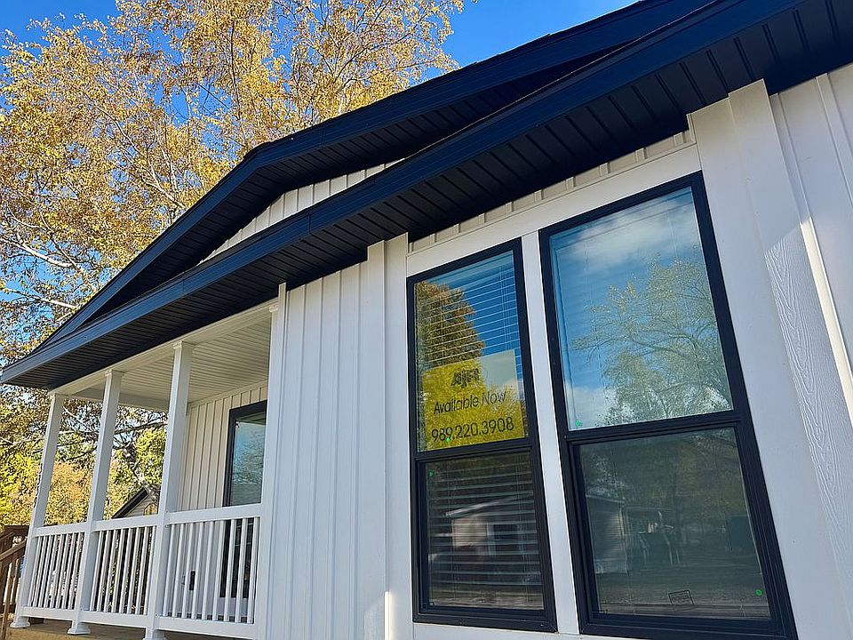 Surrounded by beautiful, mature Michigan trees, this brand-new 3-bedroom, 2-bath home offers stunning views and a rare private front porch—perfect for relaxing and taking in the peaceful, up-north feel of the community. Inside, enjoy 1,568 sq. ft. of modern living with an open floor plan, spacious living and dining areas, and a gorgeous kitchen featuring a large island, gray marble-style countertops, and white cabinetry with black finishes.