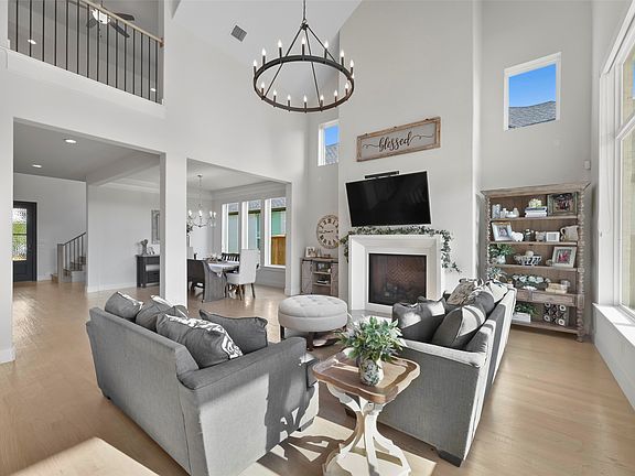 Large and beautiful modern Shaddock home in the highly sought after Grange section of the Light Farms master planned community with 5 pools, splash pad, tennis & pickleball courts, basketball courts, sand volleyball court, playgrounds, Nook restaurant & bar, dog park, Constellation lake and nature walking trails throughout the whole neighborhood. Home is priced to sell and won't last long. You'll have a hard time finding a better price per sq ft from a premium builder in this area. The location of this house in Light Farms is perfectly situated between the Barnyard, where many neighborhood events and parties take place (and houses the pool, courts, restaurant) and the lake, dog park, playground with a short walk to either location. This 4,675 sq ft house has 5 bedrooms (2 downstairs), 4.5 bathrooms, show-stopping raised study, large game room and media room, and backs to a greenbelt. This open concept home is light and airy with a wall of windows in dining and family room and loaded with upgrades with the entire first floor, partial stairs and study all covered with hardwood floors. All the carpet on second floor is brand new. Beautiful quartz counters, gas cooktop and double ovens in large kitchen with a huge pantry and a gorgeous dry bar with built-in shelves and cupboards in the dining area. Marble counters in primary bath with his and her walk-in closets, his and her vanities, an oversized shower and a stand-alone tub. Plus, walk-in closets in all secondary bedrooms. Ceiling fans throughout all bedrooms and study and on back patio. This home also includes a smart home package with video doorbell, 5.1 surround pre-wire with HDMI bundles and wireless access points for a hardwired secure network.