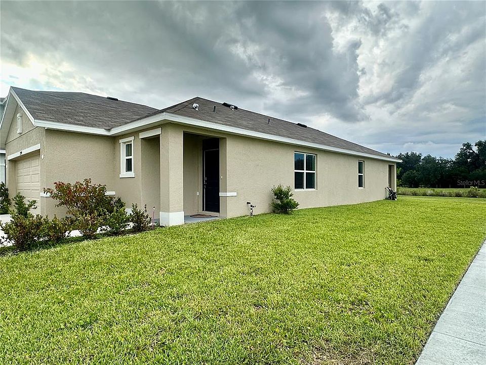 Motivated Seller! Constructed in 2023! This beautiful corner lot home, located off SR-56 in the community of SUMMERSTONE in Wesley Chapel, is built to feature three bedrooms, two bathrooms, a spacious 2-car garage, a covered patio. When you open the front door, you will enter an open plan home, dining room and main living area perfect for entertaining, featuring tile flooring in the kitchen, living room, dining room, and bathrooms. The master bedroom offers an ensuite bathroom with a shower, double vanities, and a huge walk-in closet. The kitchen has stainless steel appliances, granite countertops, a spacious pantry and plenty of cabinets. The backyard is a paradise with a covered patio, & a full view of a beautiful lot of livestock animals & green scenery. Summerstone offers a playground and a luxurious resort style pool. Situated in the bustling heart of the Wesley Chapel, residents will find themselves a 15-minute drive from I-75 and the Tampa Premium Outlets. Additionally, Wiregrass Mall, with numerous shops and dining establishments, is just a quick 5-minutes away. The area boasts convenient access to several hospitals, including St. Joseph and Advent Health, while Pasco County Schools are conveniently located within a 10-minute radius. Don't miss out on this wonderful home! inquire today to schedule a showing!