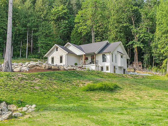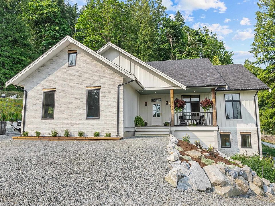 Let there be light! Stunning modern farmhouse with a balance of country and elegance! This 2yr old custom built rancher boasts over 3000 sqft of living space and includes a fully finished walkout basement. Main living features 10ft ceilings, hardwood floors and is accented with beautiful custom finishes. Spacious kitchen offers plenty of work space, gas range, stone counters, loads of storage and large center island. Primary bedroom includes an elevated ensuite with heated floors, rain head shower and walkin closet. Large covered back deck feat. cedar ceilings & natural gas. 2 acres of pristine property where the kids can roam. Room for pets & a hobby farm. Peekaboo mountain views! Build a shop or rezone for a coach house. Less than 10 min. from any schools, parks, recreation & shopping.