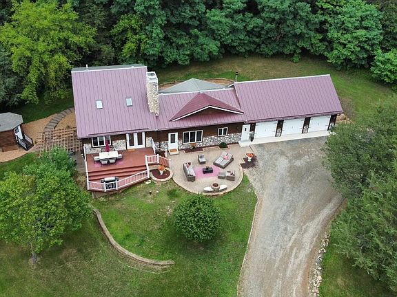 Don't miss out on this 6.08 acre updated gorgeous home featuring parking for 9 vehicles, theatre, rec room, sauna, hot tub room, fitness studio/yoga studio, band studio, 5 out buildings w/ lots of storage space. Two paver patios, walkout to the lower patio with new pergola and patio lights. Great home for entertaining and enjoying country living. Outbuilding #1 fitness studio/yoga studio 24x50 heated and cooled, has compost toilet. Outbuilding #2 24x16 band studio with heat and air. Outbuilding #3 24x50 pole barn with 10' ceilings paver floor 100 amp panel separate from the house 8x12 garage door and 9x10 slider door. Outbuilding #4 24x14 7'door heated and insulated shop. Outbuilding #5 33x24 great for storage. Main insulated garage has 3 stalls with 8'doors, easily fits full size trucks. Wood and electric heating. Insulated with a huge storage area above the garage. In 3rd stall enjoy the 10,000 pound 2 post car hoist and large capacity air compressor system.