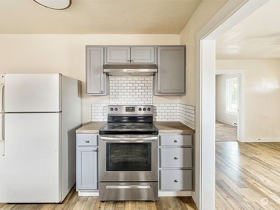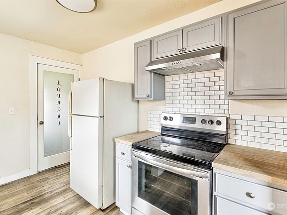 All new and ready for you. This 2 bedroom, 1 bath home includes all new flooring, roof, kitchen and more! The kitchen features beautiful blue/grey kitchen cabinets and butcher block counter tops. There is a brand new garage in the fully fenced yard and convenient off street parking. So much to offer for such a great price!