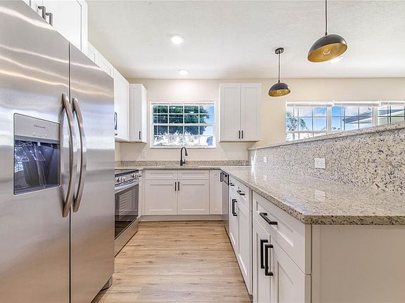 Welcome to your dream home! This beautifully 4-bedroom, 2-bathroom gem offers the perfect blend of comfort, style, and functionality. Step inside to discover a brand-new kitchen featuring sleek granite countertops, stainless steel appliances, custom cabinetry, and a spacious island—perfect for entertaining or casual family meals. The open layout is enhanced by luxury vinyl plank flooring throughout, and the entire home boasts fresh interior and exterior paint, giving it a clean, bright feel. Both bathrooms have been completely refreshed with new vanities, elegant tile work, and updated lighting, creating spa-like retreats. Other features that were updated throughout are new light fixtures, ceiling fans, and interior doors. Waking distance to the lake. Step outside to a large, fenced backyard—ideal for pets, and outdoor gatherings. It is truly a peaceful location with all the beautiful updates you could want and the views to match!