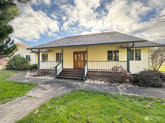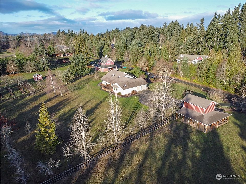 Hobby Farm located just minutes to town on 5 acres with Mountain views! Spacious kitchen, formal dining room & breakfast nook. Primary suite w/walk-in closet, jetted tub & walk-in shower. Southern exposure cedar deck partially covered w/built-in benches. Deer fenced orchard w/an apple, 2 cherry, apricot, 2 Asian pears, 2 Bartletts & 2 plum trees; raised beds & garden area. Barn w/hay loft & 1 acre of fenced pasture for your cows, horses, llamas, etc.; garden shed & 5 additional storage sheds. Detached 2,046 shop w/separate electrical panel & 220V w/half bath, office w/heat pump & carport. Electric gated entry; paved circular driveway, & additional parking. Plenty of room and storage buildings for your home business, animals, boats & RV's.