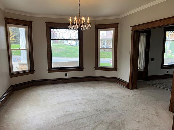 Recently updated including all new paint, updated kitchen, all kitchen appliances and and both bathrooms updated in September 2025. Stately brick colonial home with huge wrap-around porch on a double lot in Knox Borough. Charming home with nice woodwork, pocket doors and some hardwood flooring. Property offers an eat-in kitchen, first floor laundry, formal dining room, living room with bay windows and large foyer. Second floor has four bedroom and full bath. As a bonus you get a walk-up attic that would be a fantastic office or family room. Exterior has large yard area w/2+ car brick garage AND 12' x 24' shed that has electric and had heat for the owners wood working shop. Rear alley access to garage Roof was replaced in the last 10 years (both the shingle and metal and rubber portion of roof). New furnace, windows and flooring in dining room in last 10 years. New hot water tank in 2018. Close to Route 322, Route 208 and Interstate 80 for easy commuting.