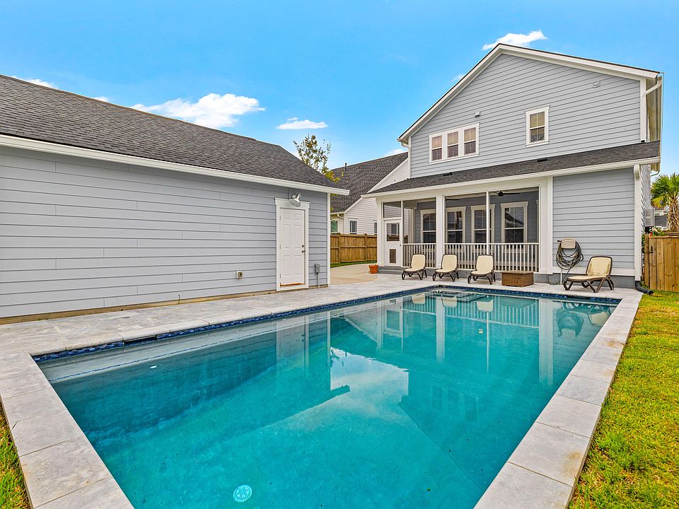 Welcome to 336 Bumble Way, a beautifully upgraded 5-bedroom, 4.5-bath home in the highly sought-after Summers Corner community. This residence seamlessly blends thoughtful design with modern luxury, featuring numerous owner upgrades that elevate both style and functionality.Upon entering, you'll notice the custom touches throughout, starting with the renovated powder bathroom and the detailed wainscoting and fresh paint in the upstairs bedrooms. The living room boasts custom cabinets and shelves, providing both aesthetic appeal and practical storage. In the kitchen, stylish pendant lights illuminate the space, complementing the granite countertops, shaker cabinets, and shiplap-wrapped island. Additional upgrades include a newly installed back door, outdoor fans for added comfort,AC in the garage, and a fenced yard with a gated entrance, all of which enhance the private backyard oasis, complete with a sparkling pool. The Calhoun Plan offers a well-thought-out, open-concept layout. The spacious first-floor master suite is a true retreat, featuring its own private porch, a dedicated laundry space, a luxurious freestanding tub, and an expansive tiled walk-in shower. The gourmet kitchen is equipped with premium appliances, including a built-in wall oven, microwave, 5-burner gas cooktop, and a stylish hood vent. The kitchen flows seamlessly into the great room, where a gas fireplace with shiplap surround creates a cozy ambiance. Durable laminate flooring spans the entire first floor, ensuring a cohesive and elegant look throughout. Upstairs, the home opens into a generous loft area, perfect for use as an entertainment or relaxation space. Two bedrooms share a full bath, while the remaining two feature en suite baths for added privacy and convenience. A second-floor laundry room further enhances the home's practical layout. Outside, the screened-in porch offers the perfect space to enjoy peaceful mornings or evenings, overlooking the tranquil surroundings of Summers Corner. Living in Summers Corner offers a harmonious blend of town and country life. Explore scenic walking trails, secret gardens, and beautiful parks woven throughout the community. With amenities like a community pool, playgrounds, and The Corner House Café, this neighborhood fosters a true sense of community. Outdoor enthusiasts will love the kayaking, fishing, hiking, and biking opportunities, while the East Edisto Conservancy ensures the area's natural beauty will be preserved for future generations. Discover the charm and comfort of 336 Bumble Way, where thoughtful design and luxurious upgrades combine to offer the best in Lowcountry living.