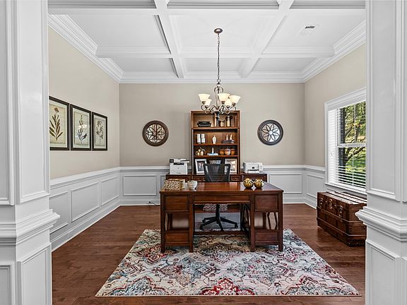 Gas fireplaceLarge islandLarge screened-in patioPrivate wooded viewsCoffered dining roomAbundant storageWalk-in pantry