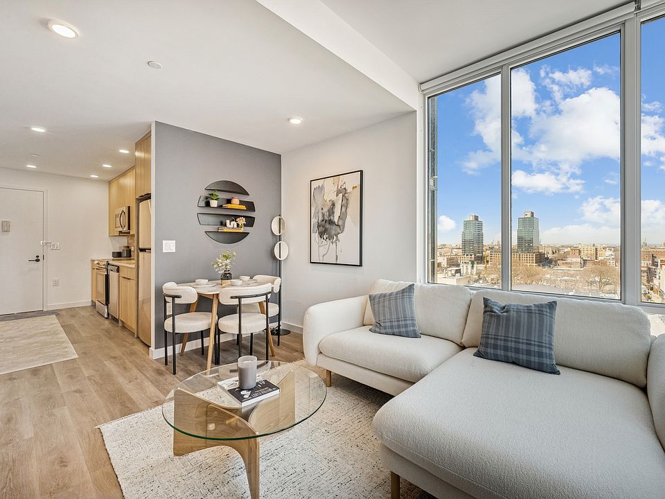 Washer dryerFilled with natural lightBeautiful sunsetsStainless steel appliancesOpen views of brooklynWide plank flooringStone kitchen counter tops