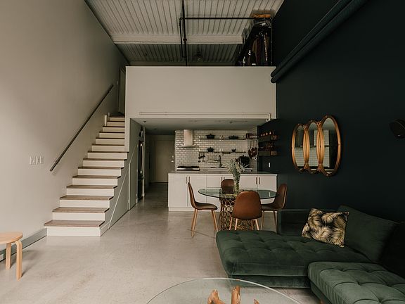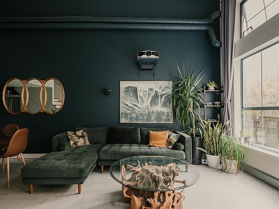 ARTECH Loft. One of the original live–work buildings in Mount Pleasant, ARTECH remains a cornerstone of the neighbourhood’s creative identity. Opportunities to purchase here are rare. Owned by the same custodian for the last 13 years, the home has been well cared for and offers a blank canvas ready for your design vision. The open plan layout features exposed steel beams, concrete floors, and nearly 17 ft ceilings that give the space its signature volume. A lofted bedroom sits above the main level, while south facing glazing brings warmth and natural light throughout the day, creating a bright, calm atmosphere. The building’s communal rooftop patio offers sweeping views of Downtown and the North Shore mountains.