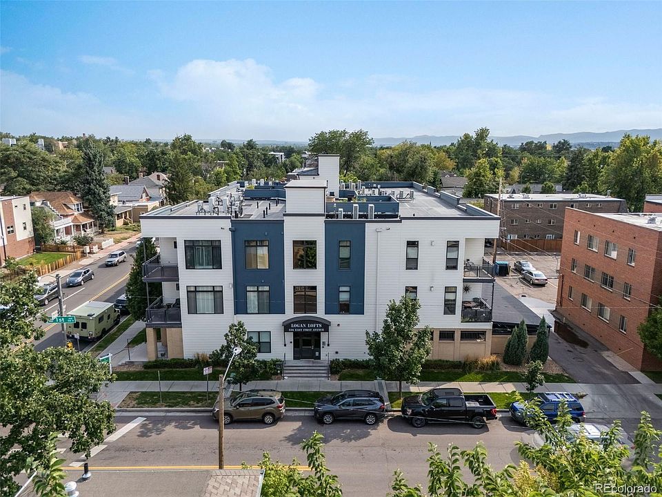 Welcome to Logan Lofts, where modern living meets convenience! This 870 sq. ft. 1-bedroom, 1-bathroom condo perfectly blends style and functionality. The open-concept layout with tall ceilings provides ample space, making it feel airy and inviting. The kitchen is a chef's delight with stainless steel appliances, beautiful wood cabinetry, a breakfast bar overlooking the living area, and a breakfast nook, perfect for entertaining guests. Relax on your sunny balcony with access from the kitchen and the bedroom. Two large walk-in closets and an in-unit washer-dryer make this space convenient and easy to call home! A reserved parking spot #3 in the building's lot adds an extra layer of convenience. The building was originally designed as a green, low-energy structure, with higher-than-normal insulation and energy-efficient split-unit air conditioning that also serves as a heat source. With a monthly HOA fee of $512.00, homeowners can enjoy a worry-free lifestyle that covers essential services like water, trash removal, and exterior maintenance. The building offers secure entry, elevator access, and well-maintained common areas, making city living stress-free. Enjoy the unobstructed views of the mountains and downtown from the community rooftop deck. This home also boasts excellent proximity to local shops, restaurants, and public transportation, making it ideal for anyone seeking an urban lifestyle. With impressive walkability, bike, and transit scores, exploring the city has never been easier. Whether you're a first-time homebuyer, an investor, or simply looking for a stylish city retreat, this condo offers the perfect balance of comfort and modern living in one of Denver’s most desirable locations. Don’t miss out on the opportunity to own a piece of urban luxury—schedule your showing today!