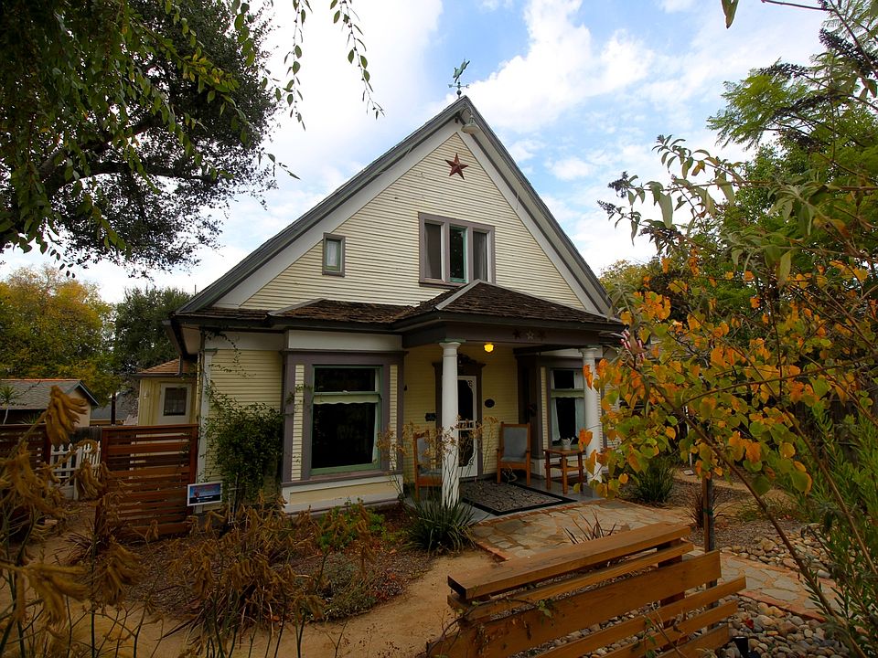 The Hutchins House at 336 East 7th Ave is for sale. Built in the early 1900s, it is 4 bedroom, 2 bathroom turn of the century farmhouse located in the desirable Old Escondido Historic District neighborhood. The front yard has professionally updated drought tolerant native landscape, mature trees and a classic front porch. The first floor level has 9' ceilings, original hardwood flooring, with vintage windows and hardware throughout. Custom crafted details such as built in shelving, pocket sliding doors, window bench seating and crown molding can be observed throughout the home. Downstair rooms include a large dining room, kitchen with pantry, laundry room, family room, living room, bathroom, a combined two bedroom suite, and screened in porch area. Upstairs are two bedrooms that include a master bedroom with two large walk-in closets, and a bathroom with a clawfoot tub shower. The private backyard with alley access has parking with a detached garage, chicken coop, fruit trees, several raised bed gardens, and an outdoor kitchen area. The home has a walk in basement workshop area that is accessed from the backyard.