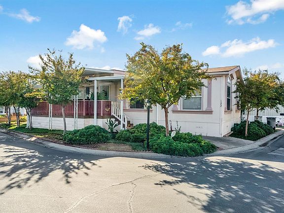 Beautifully updated 4-bedroom, 2-bath double-wide manufactured home in the highly sought-after San Joaquin Village Mobile Home Park conveniently located near Riverpark Shopping Center and just across from Kaiser Hospital. This spacious home offers an open floor plan with vaulted ceilings, oversized windows, and a large family room featuring elegant tile, laminate flooring and ceiling fans. The completely remodeled kitchen includes a center island, pantry, and abundant counter space, perfect for entertaining. The primary suite boasts dual closets, new laminate flooring, and a remodeled ensuite bath with a soaking tub, separate shower, and new vanity with updated sinks and faucets. Additional upgrades include laminate flooring in all bedrooms, new light fixtures, and ceiling fans throughout. Enjoy outdoor living on the large covered porch, a two-car carport, and a storage shed all on a desirable corner lot in the award-winning Clovis Unified School District.