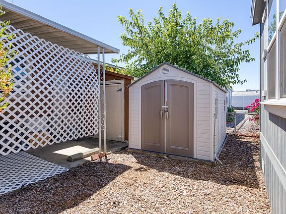 Built in 2019 by Fleetwood Homes, this energy-efficient double-wide manufactured home is located in San Joaquin Village Mobile Home Parka well-maintained, all-ages community in the award-winning Clovis Unified School District. Ideally situated within walking distance to River Park Shopping Center and Kaiser Hospital, this 3-bedroom, 2-bath home offers approximately 1,500 sq. ft. of comfortable, move-in ready living space.Enjoy an open and airy floor plan featuring vaulted ceilings, dual-pane windows, neutral flooring, ceiling fans, and central heating & air. The spacious living room is filled with natural light from large windows adorned with wood box valances. The gourmet kitchen opens to the living area and features wood cabinetry, gas appliances, a large center island, and dishwasher perfect for entertaining or everyday living.The private primary suite includes a walk-in closet and an en-suite bath with dual sinks. Additional highlights include an indoor laundry room with gas hookups, a covered front porch, a 2-car carport, and a storage shed.San Joaquin Village offers a variety of amenities, including a pool, spa, clubhouse, playground, and RV parkingmaking this the perfect place to call home.