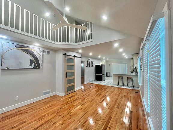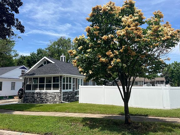 Full remodeled bungalow with high-end finishes and quality upgrades throughout. Features include granite counters, custom Lily Ann cabinets, snack bar, new stainless appliances (incl. washer/dryer), vaulted spacious living room with 16-ft ceilings, and open loft. Two bedrooms plus enclosed three-season porch. New hardwood, tile, and carpet. Updates include new bathroom , roof, siding, woodgrain exterior, windows, stone front, furnace, A/C, hot water heater, electrical, plumbing, and insulation. Slider to fenced yard, shed, and great highway access. Move-in ready with style and function.