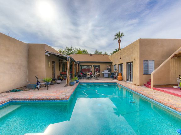 Fabulous 3 bed / 3 bath single level home w/ detached guest house & pool in the downtown historic district of La Hacienda. No HOA. Circular drive is great! Open floor plan w/ updates throughout. Kitchen offers SS appliances & plenty of cabinet & counter space. Dining area has huge window w/ great view of backyard & pool. Large master w/ private bath. Second bedroom also has attached bath. Charming backyard w/ sparkling pool, sun shades & outdoor beehive patio w/ seating area. Rooftop deck has great view of city lights & sunsets! Detached guesthouse offers kitchenette, bathroom & its’ own laundry room, along w/ private entry from yard. 1 car garage w/ storage is a plus. Currently tenant occupied.