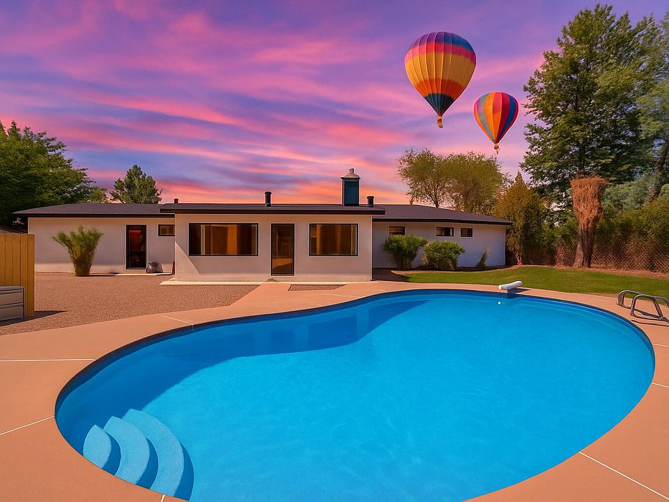 **Seller offering $5,000 for Rate Buy Down with accepetable offer** Completely remodeled Los Ranchos gem on a private 1/2-acre cul-de-sac lot! This home features brand new thermal double-pane windows, fresh interior/exterior paint, new laminate & carpet flooring, updated fixtures, and LED lighting throughout. Two spacious living areas and a large open kitchen with satin granite countertops, farmhouse sink, and new stainless appliances. Two fireplaces (wood-burning & electric), 3 bedrooms, 3 baths--including two stunning remodeled bathrooms and a half bath in the service room. Walk-in closet, skylights, 8' ceilings, refrigerated air, 2 A/C units, pool with diving board, lush landscaping, barn/workshop, side yard access, and oversized garage.