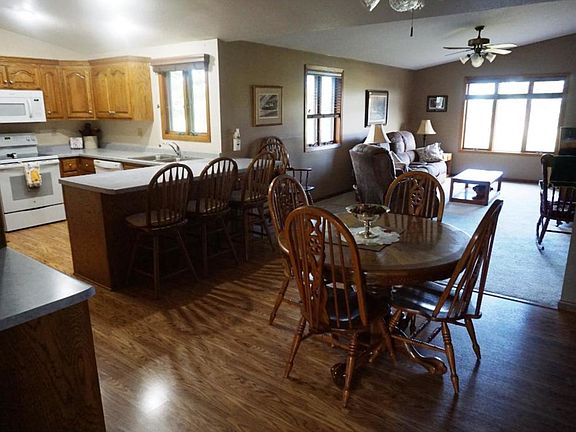 Spacious 3BR/3BA main floor living home is ideal for a Staycation or entertaining family & friends! Spread out in 3398 finished sq ft thanks to the vaulted open floor plan and finished lower level walk-out! Home was built in 1973 with an addition added about 1991. Carpeted main floor living and family rooms are both vaulted. Vaulted dining adjoins the kitchen with same laminate wood flooring, custom Oak cabinetry, pantry w/roll outs and breakfast bar. Find all three carpeted bedrooms with lighted walk-in closets on the main floor; Owner's suite has a 3/4 bath and new patio door to deck. Main floor full bath has a single vanity. Nicely sized foyer offers a closet and open staircase to the lower level. Everyone will love the inviting lower level featuring a wet bar/family room with gas fireplace; 2nd kitchen with laminate flooring and sink; hot tub room with Cedar walls, recessed lights, tiled floors and slider to back; rec room; guest room/office and unfinished storage! Metal siding w/brick accents; new roof-'17; metal gutters w/leaf guards; 200AMP; new Lennox FA furnace/central air (4yrs); air-to-air exchanger; furnace humidifier; EZ Breath air purifier in bar room; water softener; new water heater (2yrs); 3 sump pumps; Andersen windows; block basement w/drain tile. Appliances consist of the smooth top electric range, microwave, refrigerator, dishwasher, disposal, lower level freezer and small bar fridge, washer & dryer in main floor laundry closet. Monthly utility averages: $192 electric/$50 natural gas. 2 Car attached garage has an asphalt driveway and steps down to the basement with doggie door; invisible fencing is in the yard as is a 12x12 storage shed. Nearly 1 Acre double lot is within walking (or golf cart) distance of the local golf course. Enjoy the rural views from the back deck of this conveniently located well maintained home!