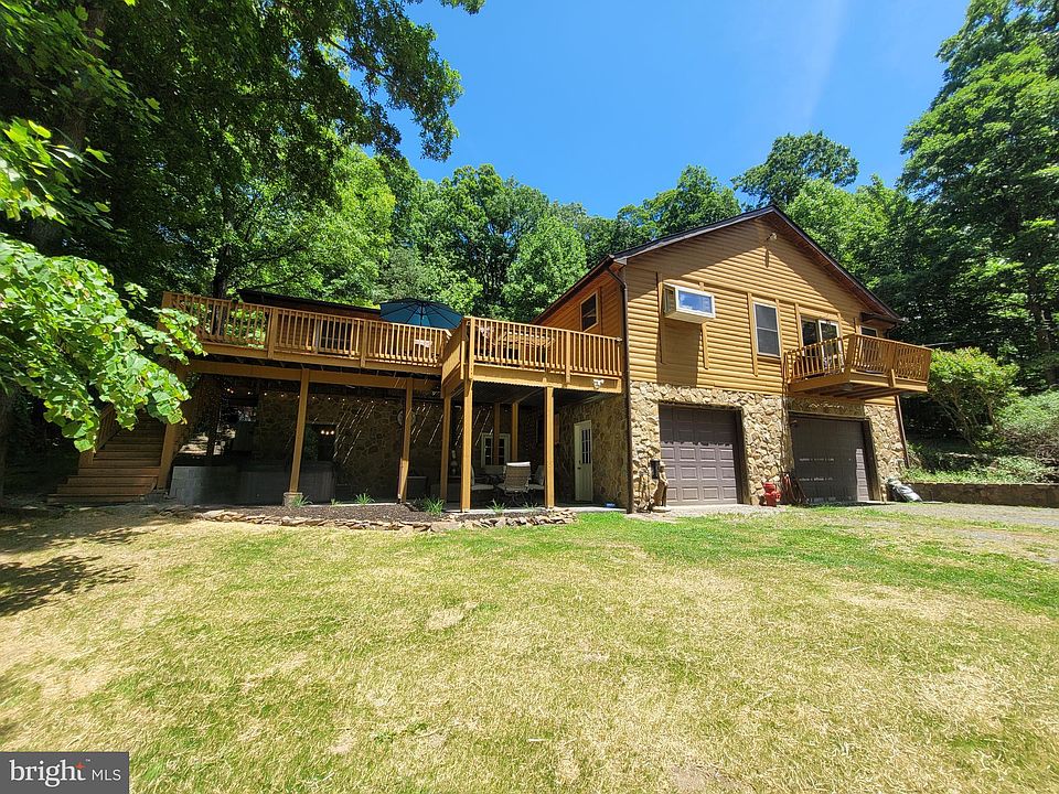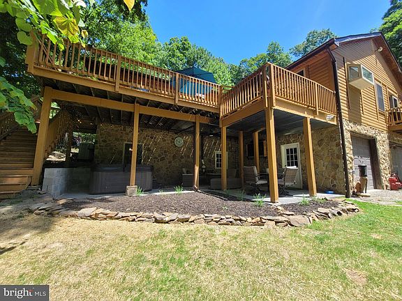 Your private oasis near the river awaits! 5 level wooded acres only a couple miles off Rt 50 near Shenandoah River. Beautiful & spacious well maintained log home boasts vaulted ceilings, skylights and open airy feel. Modern luxury meets rustic elegance where you can stay toasty warm by the stone fireplace or spend summer days in the hot tub or on the large deck surrounded by nature. This home has the benefits of a ranch style living with everything on the main level and also the expansive finished basement & 3 car garage. Main level primary bedroom with private balcony + 3 additional bedrooms for a total of 4 bedrooms & 2 full baths, all on main level plus a 3rd full bath in finished basement with additional rooms that are being used currently as bedrooms.. Hardwood floors, huge kitchen with granite counters that leads to an expansive private deck perfect for listening to the wildlife while enjoying your early morning coffee overlooking the beautiful , peaceful nature of Clarke County. Natural walkout basement w/ spiral staircase, mostly finished with a wood ( pellet ) stove, kitchenette with solid wood seating area & full bathroom with separate shower. 2 rooms in basement currently used as additional bedrooms, is perfect for a large family or separate apartment area that leads to a covered stone patio with outdoor living area, complete with hot tub & television for outdoor entertaining and an invisible fence has been installed. This rare private oasis will not disappoint. Showings by appointment only.