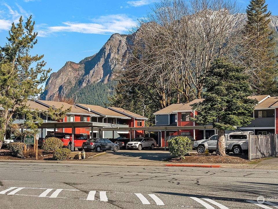 Updated top-floor unit in the heart of North Bend. Enjoy views of Mt Si and Si View Park from your private balcony. Shops, dining, Si View Community Center and pool, a seasonal farmer's market and more are just moments away. Enjoy nearby hiking trails. This charming two-bedroom has been refreshed with new paint and carpet. Cozy fireplace. All appliances are included. Prized schools. Quick access to I-90 makes commuting a breeze. Dues include water/sewer/garbage. Pre-inspected. This charming unit is a must-see!
