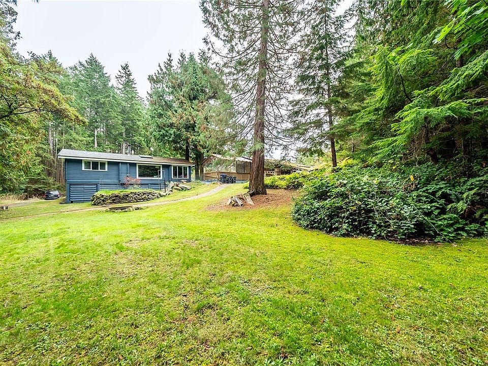 Charming and private Pan-Abode home on 2.1 acres, set toward the back of the property for a peaceful West Coast feel. This well-loved home features new skylights, upgraded windows, new flooring, two renovated bathrooms, a renovated kitchen, updated lighting, two high-efficiency heaters, and a newer woodstove (2022). The exterior has been fully painted, giving it a fresh cottage vibe. Practical updates include a new roof (approx. 2 years), septic pumped recently, insulated and heat-traced above-ground water lines, plus both a well and cistern. Enjoy great bedroom separation, warm wood interiors, and two decks overlooking the forested acreage. A detached 448 sq. ft. studio with toilet, sink, and two flexible rooms is ideal for a home office, artist’s studio, or workshop. A rare and beautifully treed property on Gabriola—come take a look.