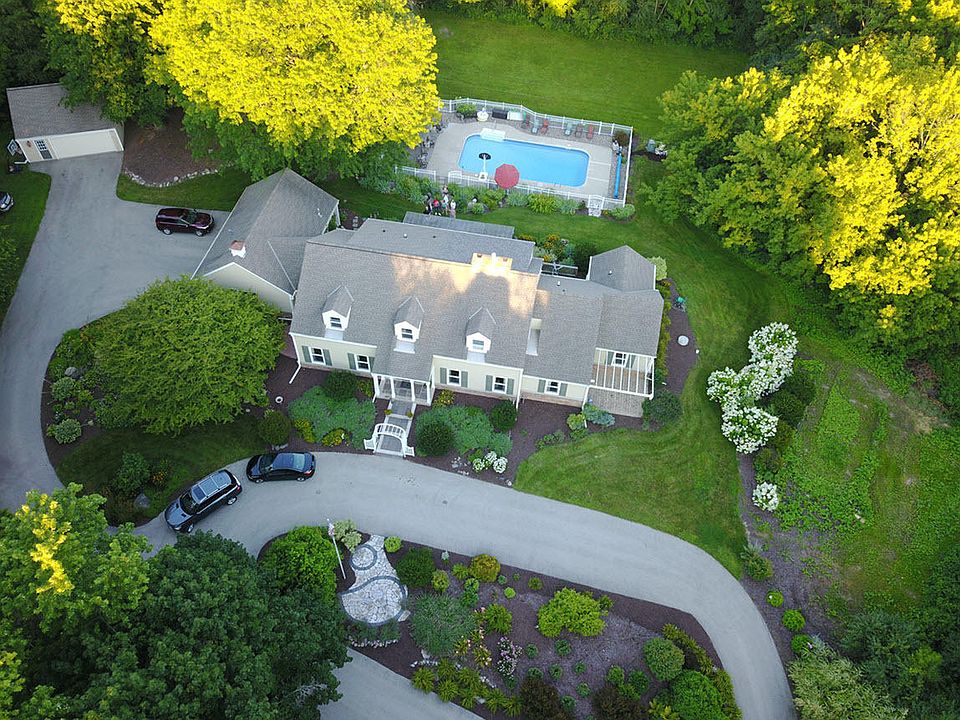 Unique & exceptional quality encompass comfort, class & impressive details. The chef's kitchen has 2 islands & is the heart of the home, opening to a family room w/ natural FP. Adjacent LR features a gas FP. beveled glass doors throughout the LL. 1st floor master suite has 2 full baths & 2 walk-in closets! 3 spacious BR grace the upstairs along w/ 2 full baths & a large loft area for reading, playing games, or lounging. Private serene setting w/ beautiful seasonal gardens. Relax on one of the multiple patios, take a refreshing swim in the in-ground heated pool, or enjoy the peacefulness of the walking trails that have been thoughtfully groomed in the wooded area of the property. 3.5 car attached garage plus additional 2.9 car detached garage. Horses allowed. ext; Cedar clapboard over brick