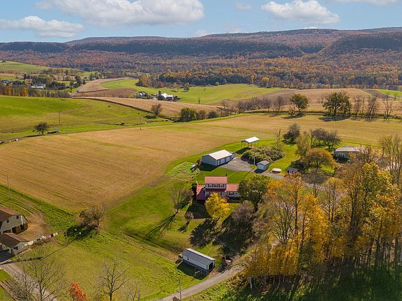Take in the views of the rolling pastures and mountains from your spacious wrap around porch where the sunrises and sunsets can't be beat! This adorable farmette has 3 bedrooms, 2.5 baths and is located in Penns Valley, about 25 minutes from State College. With 2 acres there is space to raise goats, chickens and other livestock and grow your own food. There is plenty of space for the hobbyist or small business owner with an oversized, 30x40, heated, detached garage and two additional sheds. Inside the home you'll find a spacious kitchen, laundry room, living room, dining room and half bath on the first floor. The three bedrooms including an owners suite and full bathroom are on the second floor. There is plenty of storage and space for a workshop in the full, unfinished, walk out basement. Crop fields behind the house have the option of being rented to neighboring farmer for income (no formal agreement in place).