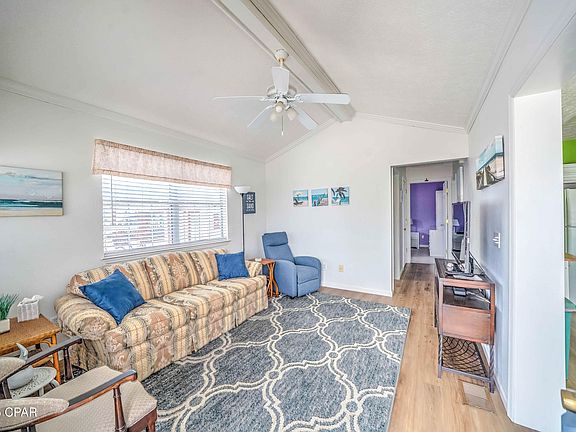 Check out this adorable 2 bedroom, 2 bath home in popular Venture Out resort! Great floor plan and perfect location within the resort. Living room and kitchen are both good size. Seller has recently added new flooring, paint and new washer/dryer. This home is being sold furnished and ready to go. Come to paradise and make this your 2nd home or use it as investment property, you're a winner either way! Venture Out is a golf cart community that has exploded with popularity recently... With 300' on the beautiful pristine beaches of the Gulf of Mexico and 1,000' on the Grand Lagoon. Venture Out has something for everyone.