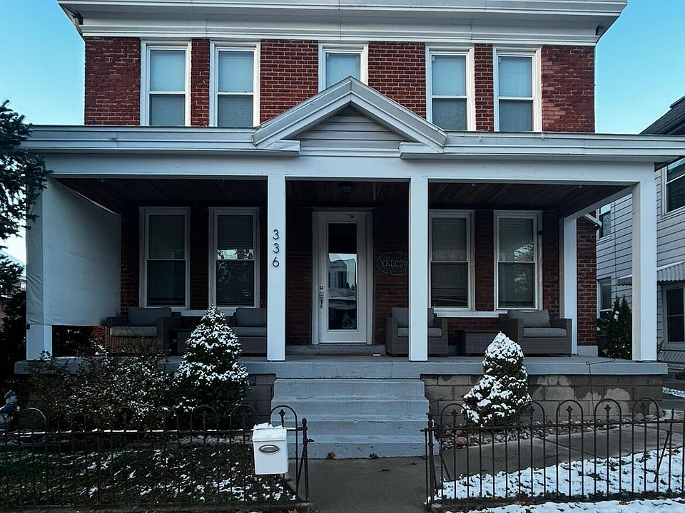Step into the charm of this classic American Foursquare home featuring 5 bedrooms and 2 full bathrooms, perfectly situated on a large corner lot in a convenient location. From the moment you enter, you'll appreciate the original hardwood floors, beautiful woodwork, and the timeless character that has been thoughtfully preserved throughout. The kitchen has been tastefully updated with shaker cabinets and new quartz countertops, blending modern function with classic style. Enjoy peace of mind with many recent upgrades while still benefiting from the warmth and appeal of historic craftsmanship. The fenced-in backyard and expansive front porch offer inviting spaces to relax, entertain, or simply watch the world go by. With ample on-street parking and generous indoor and outdoor living spaces, this home provides comfort, charm, and flexibility for a variety of lifestyles. 3rd floor half-bath rough-in offers potential for even more convenience. Interior photos coming soon. Don't miss your chance to make this one your own!