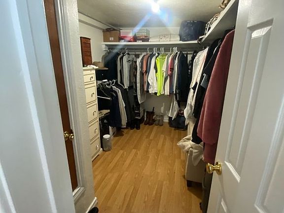 Wood floorsSpacious walk-in closetBathroom linen closet