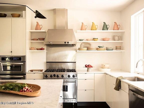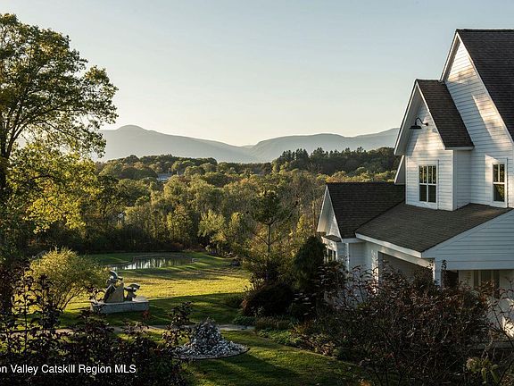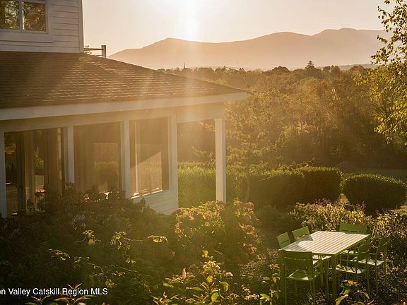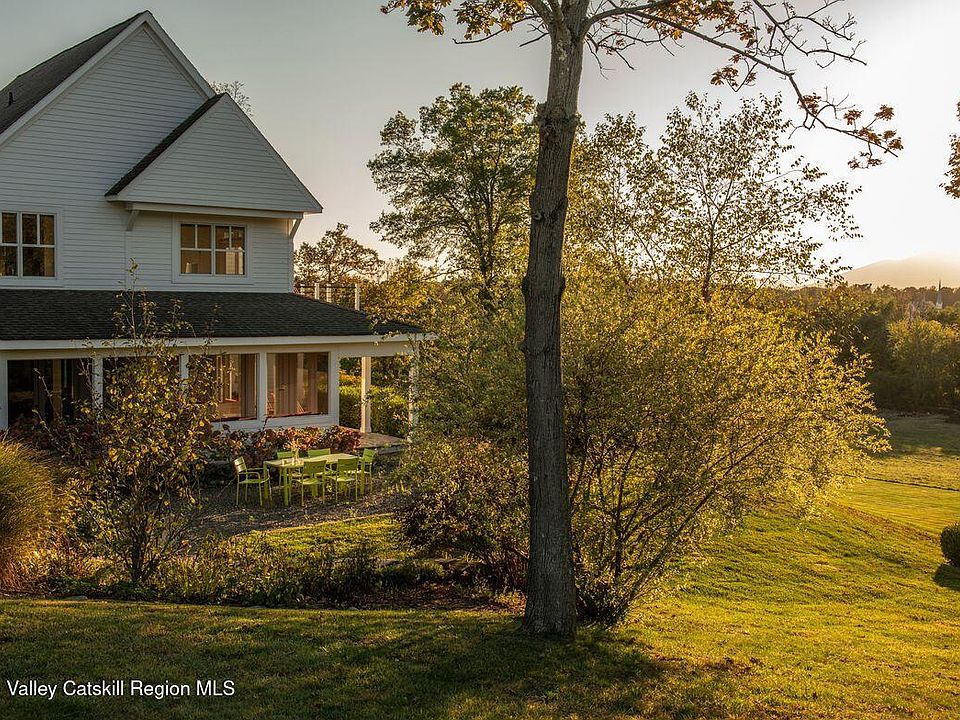 All of the charm of an old farmhouse with none of the headaches. This c2005 build has sweeping views of the Catskill Mountains and loads of charm. Down a long, tree lined driveway, you're just two minutes from the historic hamlet of Germantown but you feel like you're in a world of your own. Peaceful, private and quiet, 336 Main Street truly offers the best of both worlds. Rocking chairs line the porch to watch the show as the sun sets over the mountains, a fire pit sits in the yard and hammocks hang in the trees. The eight acres have been beautifully landscaped with low maintenance, perennial gardens, and the rolling green lawn brings your eye to the mountains. A bucolic view, the only building in sight is a church steeple in the distance. Inside, you'll find high ceilings and walls of windows and glass doors to let the outside in— the house was truly built to frame the view. The chef's kitchen is an absolute dream with a large island, a Sub Zero refrigerator, Viking gas range, two sinks and two dishwashers. A screened in porch runs the length of the house, perfect for entertaining, while there are quiet sitting rooms and an office tucked off to the side with dreamy views of the landscape and mountains. Upstairs there are three bedrooms, all ensuite. The primary has a private balcony & a large bathroom with a double vanity, a soaking tub and a large walk-in shower. The third floor has been built out with bunk beds, perfect for overflow or a place to park the kids. 336 Main is the ultimate in country living— it leaves no stone unturned with its modern conveniences, old world charm, and those quintessential Hudson Valley pastoral views. Just 10m to Hudson & Amtrak, 15m to Rhinebeck village and 2h north of NYC.