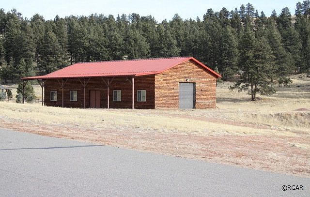 Looking for a lifestyle change? Imagine yourself living in the Colorado mountains, owning a business in a historic western town and enjoying the camaraderie of a small rural community. Bring your fresh ideas! This 2160 sq ft building on nearly 1 acre lot was once used to store and sell antique wagons. There is a 12x60 heated area plus 24x60 shop space with 10ft end wall garage doors. Floors are gravel. Also includes 12x60 covered front patio and bathroom. Use this building for shop projects, storage, sales, light manufacturing...so many possibilities with Guffey's multi-use zoning. Room for your cabin or home for a live/work combination.