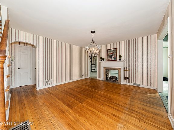 In town charmer on a quiet street. Living Room and Dining Room share a 2 sided fireplace. 1st floor bedroom and full bath. Some hardwood floors on the 1st floor. Laundry room on 1st floor too or could be a little office. Kitchen overlooks a large 3 season room with doors to the back yard and spacious screened porch. Lovely fenced back yard with 2 brick patios, walkways and lots of planting beds. 64x132 lot. There are 3 more bedrooms, a loft area and a full bath upstairs. This sweet home is waiting for you to update and make this home your own!! Expand the 2nd floor, and/or rearrange and add a master bath, loads of potential on the 1st floor too. Loads of nooks and crannies. Very livable, but selling "as is".