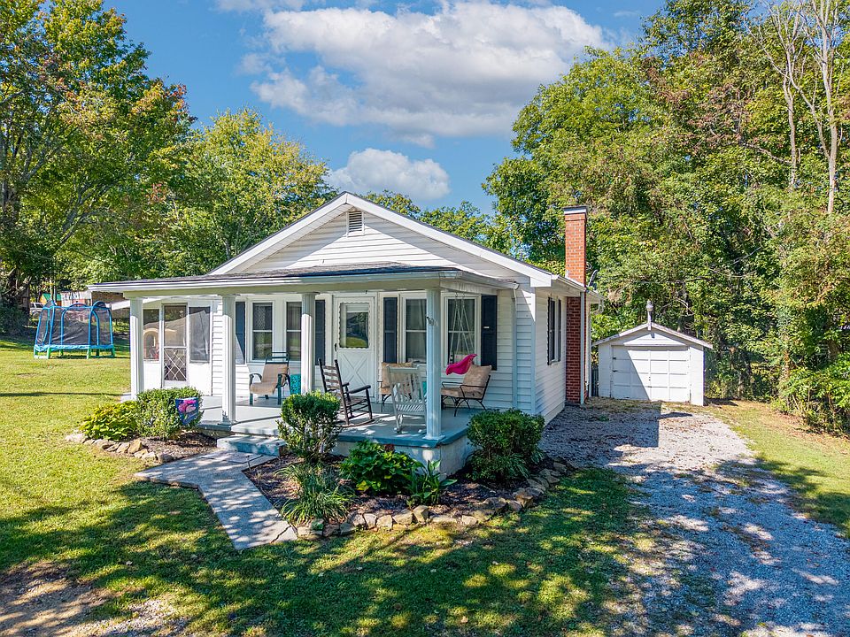 Charming and full of character, this cottage-style ranch home is tucked away in a quiet setting while still being just minutes from town for shopping, dining, and conveniences. Step inside to a spacious living room that welcomes you with warmth and comfort, leading into an updated kitchen designed with functionality in mind. The home offers two bedrooms plus a versatile bonus room, currently serving as a playroom but easily adaptable into a third bedroom, home office, or even a formal dining room to suit your needs. The home also features a full basement, providing abundant storage and currently being used as additional living space — perfect for a family room, hobby area, or workout space. A charming sunroom addition on the side of the home offers a cozy spot to relax year-round, while the detached garage adds convenience and extra storage. Outdoors, the fenced-in backyard provides a safe and private space for children, pets, or entertaining. Whether you're seeking a first home, downsizing, or simply looking for a quiet retreat close to town, this property is both inviting and functional.