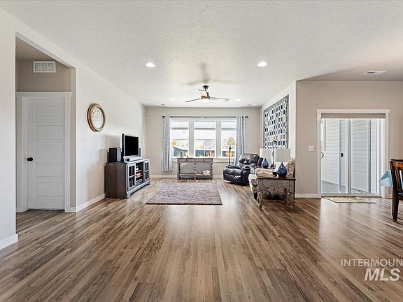 Welcome to this charming single-level townhome in the heart of Kuna. This 3-bed, 2-bath property is move-in ready and has been meticulously maintained with attention to every detail. The exterior boasts a sealed concrete driveway, beautifully landscaped curbing, an extended patio perfect for entertaining or unwinding, planter boxes, a convenient shed, and more! Plus, enjoy the added privacy of backing up to the community's green space on an East facing backyard. Step inside and be greeted by a well-appointed kitchen featuring brand new LG appliances (included), soft close cabinets, pull-out shelves, ample counter space, a spacious 3'x8' granite island, and a lovely view of the living and dining area. Throughout the home, you'll find a perfect blend of comfort and style, with easy access to numerous amenities.Notably, this home also comes with newly installed solar panels, offering both environmental benefits and potential cost savings. Don't miss the opportunity to tour this exceptional property today!