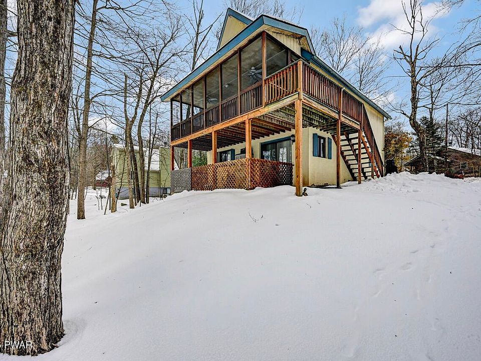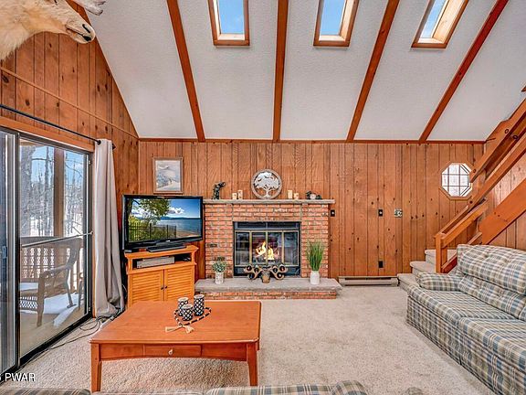 Welcome to the perfect mountain chalet nestled in the amenity-filled community of The Hideout, located in the scenic Northern Poconos--just two hours from New York City.This thoughtfully designed chalet is strategically positioned to face the rear of its level property, offering exceptional privacy and peaceful wooded views. The screened porch, also located at the back of the home, creates the perfect setting for relaxing mornings or evening gatherings surrounded by nature.Inside, the open floor plan features soaring ceilings and a warm, inviting fireplace that anchors the living room. Overlooking the main living space is a spacious loft that serves as a fourth sleeping area, ideal for guests or additional family space.The walk-out lower level expands your living and entertaining options with a large finished recreation room. An additional room on this level currently functions as a third bedroom, offering flexibility to suit your needs.Offered fully furnished, this home is truly move-in ready--making it the perfect full-time residence, vacation getaway, or investment opportunity in one of the Poconos' most desirable four-season gated communities.