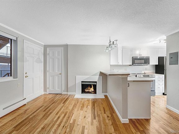 BEAUTIFUL one-bedroom condo located in a prime, highly sought-after area. The secure building features a welcoming courtyard entrance. Inside, the condo is bright and open, with new interior paint, stunning hardwood floors, and new carpet in the bedroom. Plenty of cabinet and counter space. Brand new stainless steel appliances. Kitchen pantry. Newer light fixtures. Dining area that connects to your cozy family room with a wood-burning fireplace which adds warmth to the living area. Enjoy breathtaking mountain views and city views from the spacious community rooftop deck!! Main floor fitness center, laundry facilities, and bike storage. Wonderful HOA amenities. Plenty of off street parking. HOA covers heat, water, sewer and insurance. This pet-friendly building offers exceptional walkability, with easy access to the Cherry Creek Trail, Punch Bowl Social, Trader Joe's, and many other amazing restaurants and shops! Don't miss out on owning this wonderful Condo in the heart of Denver!!!