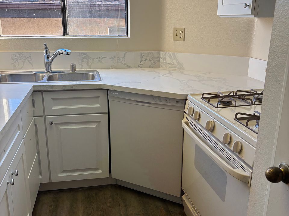 Newly renovated. Upper unit. Balcony. In unit washer dryer. Garaged parking (1 spot). Small above parking storage.