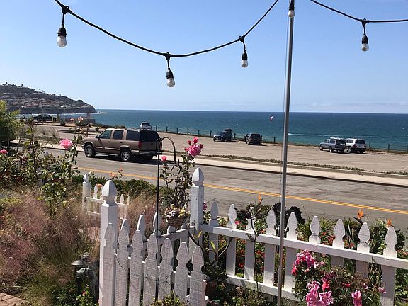 Beautiful lower one bedroom apartment located across from the beach. Gorgeous French doors open up to private balcony with unobstructed ocean views. Completely remodeled with granite countertops. One garage parking. Owner pays gardener and trash.