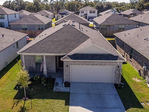 Welcome home to this beautiful 2024 Centex/Pulte energy-efficient home. Features brick/stone exterior, full gutters, sprinkler system, and professional landscaping for great curb appeal. Open floor plan with split bedrooms, high ceilings, recessed lighting, and a shaded back porch perfect for relaxing. Kitchen includes island, granite counters, tile backsplash, Whirlpool black stainless appliances, plus washer, dryer, and fridge to convey. Primary suite offers privacy with walk-in closet, double sinks, and separate tub/shower. Secondary bedroom has en-suite bath. Extras include Shaw LVP flooring, carpeted bedrooms, insulated windows and front door, Honeywell programmable thermostat, continuous hot water heater, smart home tech, and Ring security. Inside utility room fits extra fridge/freezer. Walk to Alvin Community College, close to TX-35, Hwy 6, shopping, dining, parks, and Hillcrest Golf Club. Schedule your showing today!