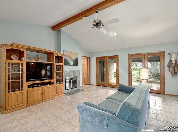 This beautiful property is sure to impress with it's sweeping views of the Texas Hill Country. Situated on almost a full acre this home features an open living space, double sided fireplace, French doors that open to a large covered deck, and an additional garage/workshop. Spacious master bedroom includes fireplace, built in shelving, large walk in closet and bonus room! Detached garage/workshop has endless possibilities for hobbies, storage, or even additional living space. Metal roof was installed in 2017. Neighborhood park with clubhouse, pool and playground is nearby. Daydreaming comes naturally in this place you could call home! Schedule a showing today!