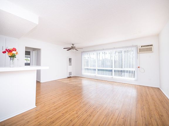 Spacious and bright with wood floors, fresh paint, wall A/C unit, wall heater, new dimmable light fixture, and a large window with new blinds.