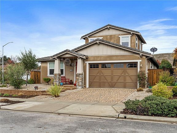 Located on a spacious corner lot in highly desirable Serra Meadows in beautiful and historic San Luis Obispo, this immaculate home is sure to please the most discriminating buyer. The three bedrooms on ground level are great for people with mobility issues, and the fourth bedroom upstairs has a private full bathroom and sitting area. Numerous high-quality features include custom cherry cabinetry in the primary bedroom, downstairs bedroom, and the upstairs hall. A generous amount of storage space is present throughout the entire home, garage, and yard, including custom closet shelving inside all bedrooms, the pantry, and the interior laundry room. A special and unique feature of the home is custom catwalks connecting most rooms of the house, perfect for cat lovers or people who enjoy the sculptural design and usage of catwalks for display shelving. A large amount of Elfa shelving on all garage walls and one downstairs bedroom provides for your storage needs. The modern kitchen is ready for the gourmet cook with abundant cabinetry, stainless appliances, plenty of counter space, plus a separate freezer unit in the laundry room that offers extra food storage. A tankless water heater never runs out of hot water. The sizable backyard is fully fenced for privacy and landscaped with mature trees and foliage, including a producing fig tree and Meyer lemon tree. A major bonus is your own workshop! The workshop is fitted with a rolling workbench for metal and wood tools, with plenty of Elfa shelving. Enjoy your screened in patio addition, protected from the elements and insects, with water for plant maintenance. The back garden has a fountain, gas fire pit, and a high-quality irrigation system. The side yard utility corridor has generous storage cabinetry for your gardening tools and supplies. Fire risk abatement measures have been taken around the grounds. Solar panels help reduce your utility bills. Several different exterior lighting systems are installed with remote controls. So many fabulous possibilities wait for you in this extraordinary home! Information is deemed reliable but not guaranteed.