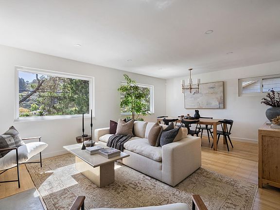 This charming Tam Valley home balances modern updates w/ thoughtful design, creating spaces that feel both functional & welcoming. At the heart of the home, the living room makes a statement w/ a fireplace that anchors the space & flows seamlessly into the dining area, connecting to a kitchen that inspires both daily life & entertaining. Beautiful floors run throughout, & natural light fills the living area through large windows, creating a warm & open atmosphere. The kitchen features Calacatta marble counters & direct access to a BBQ deck. Outside, the home comes alive w/ a back dining deck framed by a pergola & hanging light fixtures that evoke a chic, bohemian vibe. Lush landscaping including monstera, ferns, birds of paradise, palms, succulents, & a Japanese maple creates a private, tropical-inspired oasis. Multiple seating areas, tiered gardens, turf grass, & a pond complete the backyard, making it a space that feels both serene & vibrant when entertaining. Life at 336 offers the best of Tam Valley-where Mill Valley's small-town charm meets effortless access to the outdoors & city convenience. Tam Valley is known for its down-to-earth, family-friendly lifestyle paired w/ excellent schools & a strong sense of community. EZ access to shops, food, trails, parks, schools + more!