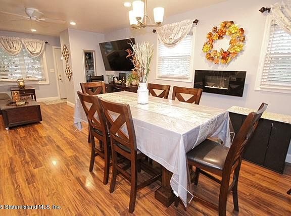 Welcome to this beautifully maintained 3-bedroom, 1.5-bathroom home featuring an open layout perfect for modern living. The spacious eat-in kitchen boasts elegant quartz countertops and sleek stainless steel appliances, leading directly to a stunning deck oasis—ideal for relaxing or entertaining—overlooking a huge private backyard. Upstairs, you'll find three generously sized bedrooms with ample closet space and a full bathroom. A large attic offers excellent additional storage.