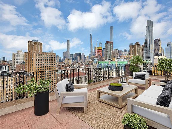 *Experience quintessential Upper West Side living at 336 West End Avenue's Penthouse E, where classic Art Deco architecture from 1932 intersects with modern luxury.* Perfectly located at the crossroads of West 76th Street, this two-bedroom, two-bath residence offers opulence at every corner, topped off by a breathtaking 813-square-foot wraparound terrace. With this outdoor haven, you'll enjoy panoramic vistas of the Hudson River, Central Park, and the iconic Midtown skyline, providing a stunning backdrop for morning coffee or sunset soirees.